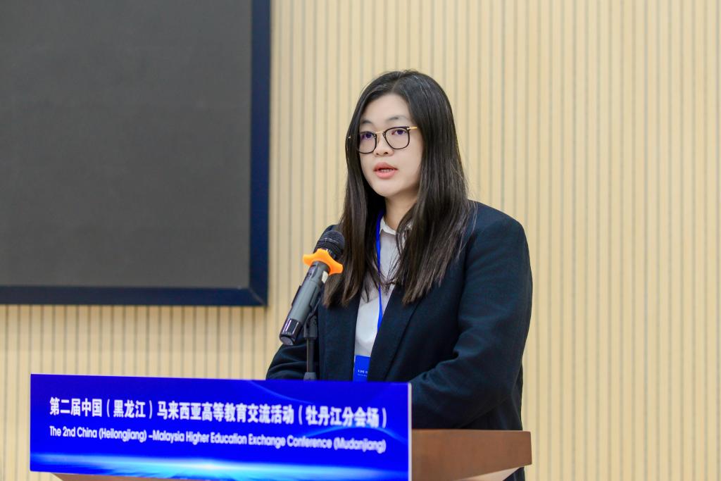 陈晓葶在致辞中指出,中国(黑龙江)马来西亚高等教育交流周活动在牡丹江师范学院设立分会场,寓意深远。两国高校不仅在科研、人才培养与产学协同中优势互补、携手共进,也必将为青年创造更广阔的发展空间,为科技与产业创新注入更强动力。她希望中马两国高校携手,以教育合作与人文交流为桥梁,共创更美好的未来。